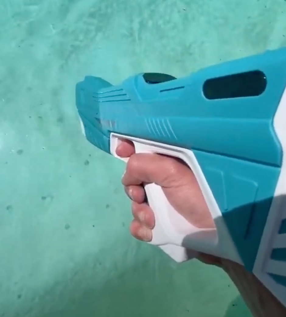 Our electric water gun has a large water tank that is easy and quick to refill. Dip the front into the water, and in just 10 seconds it’s full again. Full tanks can shoot over 20 shots in a row!