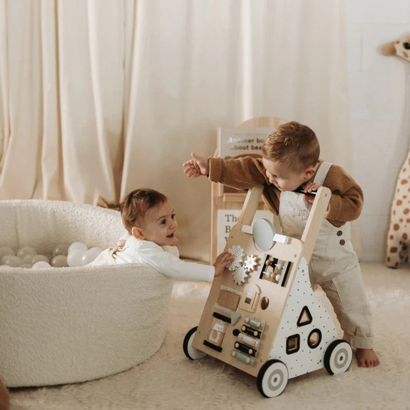 Our baby walker is more than just a toy - it is a loyal companion on the way to your child's first steps. Your little ones will develop healthy stability and balance independently and promote self-confidence, which motivates them to keep going. The gentle support of our Baby Walker encourages them to take their first steps and conquer the world at their own pace.