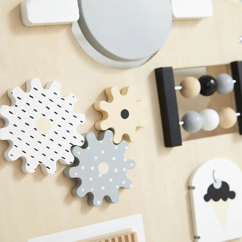 The integrated activity board opens a door to a world full of fascinating games. Movable gears, an entertaining labyrinth, shapes, and blocks act as powerful engines for your child's development. Skills such as problem solving, hand-eye coordination, and spatial understanding are sharpened through everyday play.